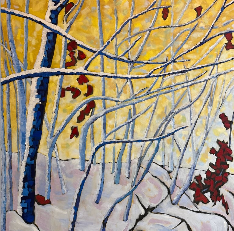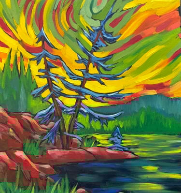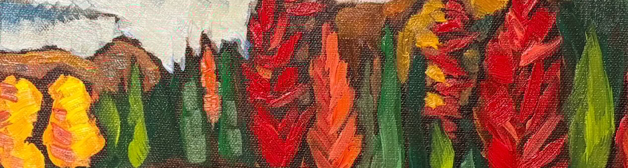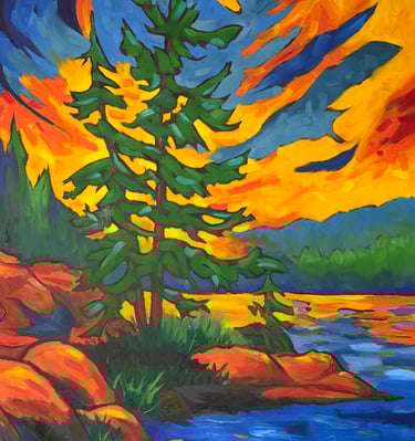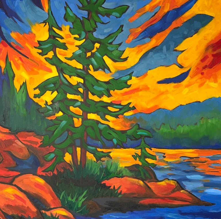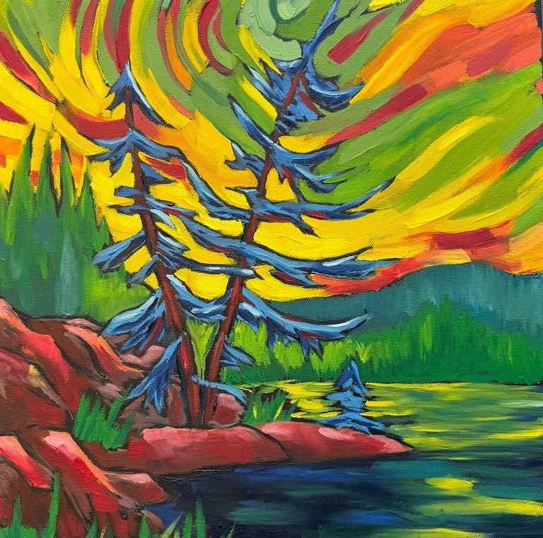 Mitch Gillick is a Canadian artist whose vibrant oil paintings celebrate the landscapes of Muskoka and beyond. Drawing on a background in both human biology and fine art from the University of Toronto and OCAD, Mitch combines a scientific eye for structure with an expressive, intuitive use of colour. His work merges realism and abstraction to evoke emotion, movement, and memory, reflecting his deep connection to nature and his lifelong creative roots.